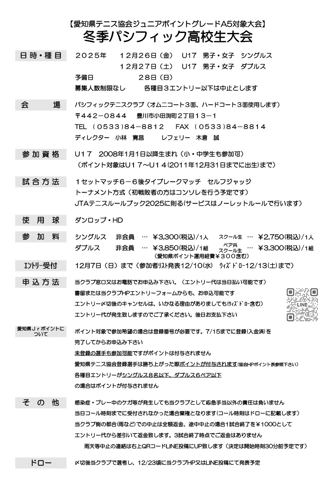Home 大会エントリー 冬季パシフィック高校生大会開催決定 冬季パシフィック高校生大会開催決定 2025.11.10 大会エントリー Tweet Share ご参加の方は下記からエントリーをお願いします エントリーはこちら 大会概要はこちら